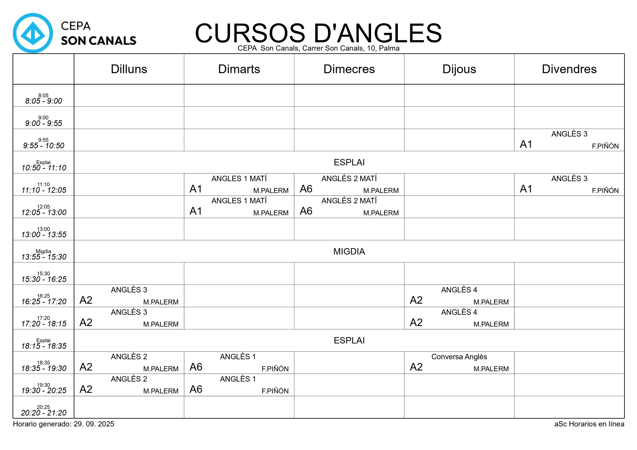 Els cursos d’Anglès s’oferten en torns de matí i capvespre: