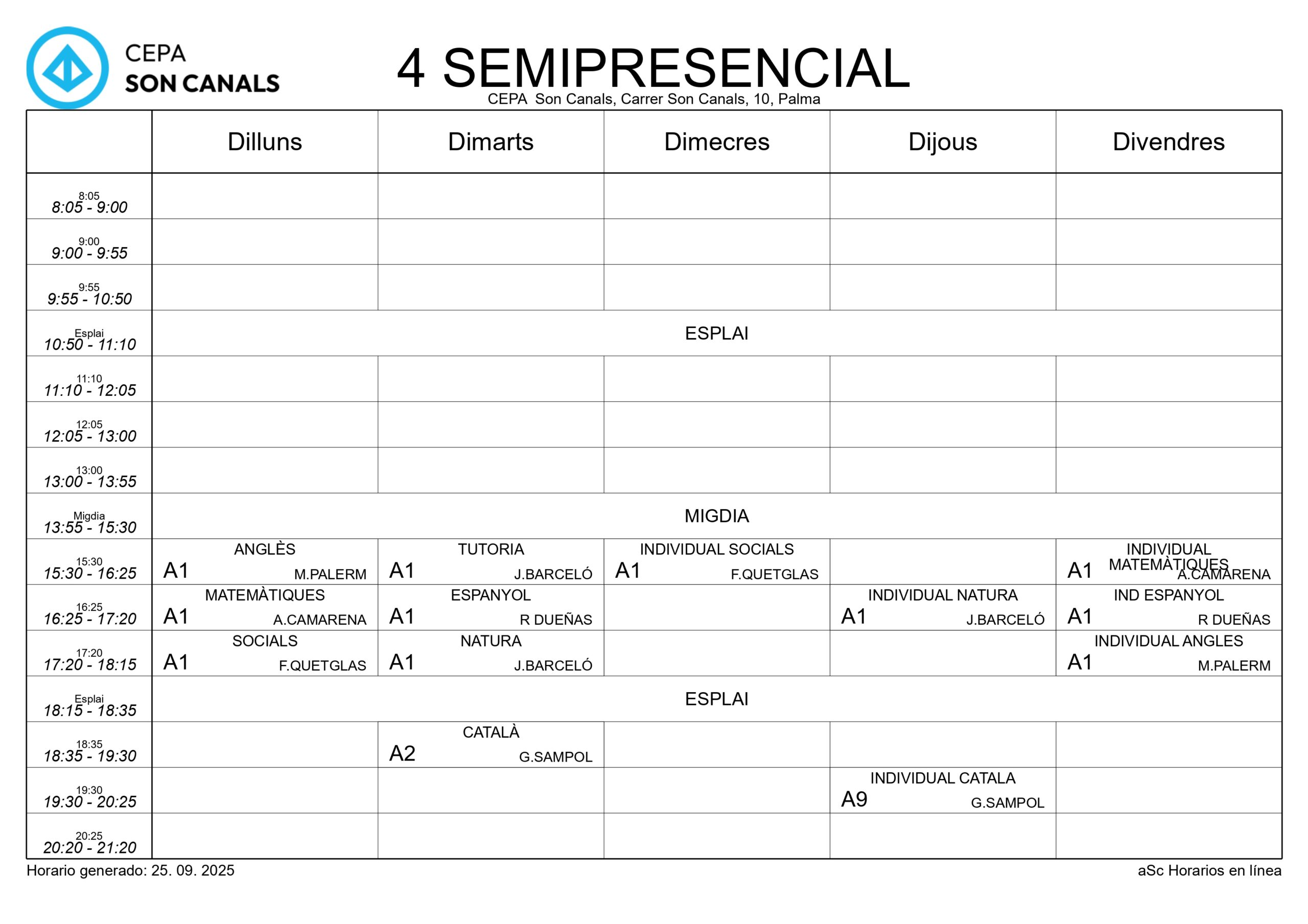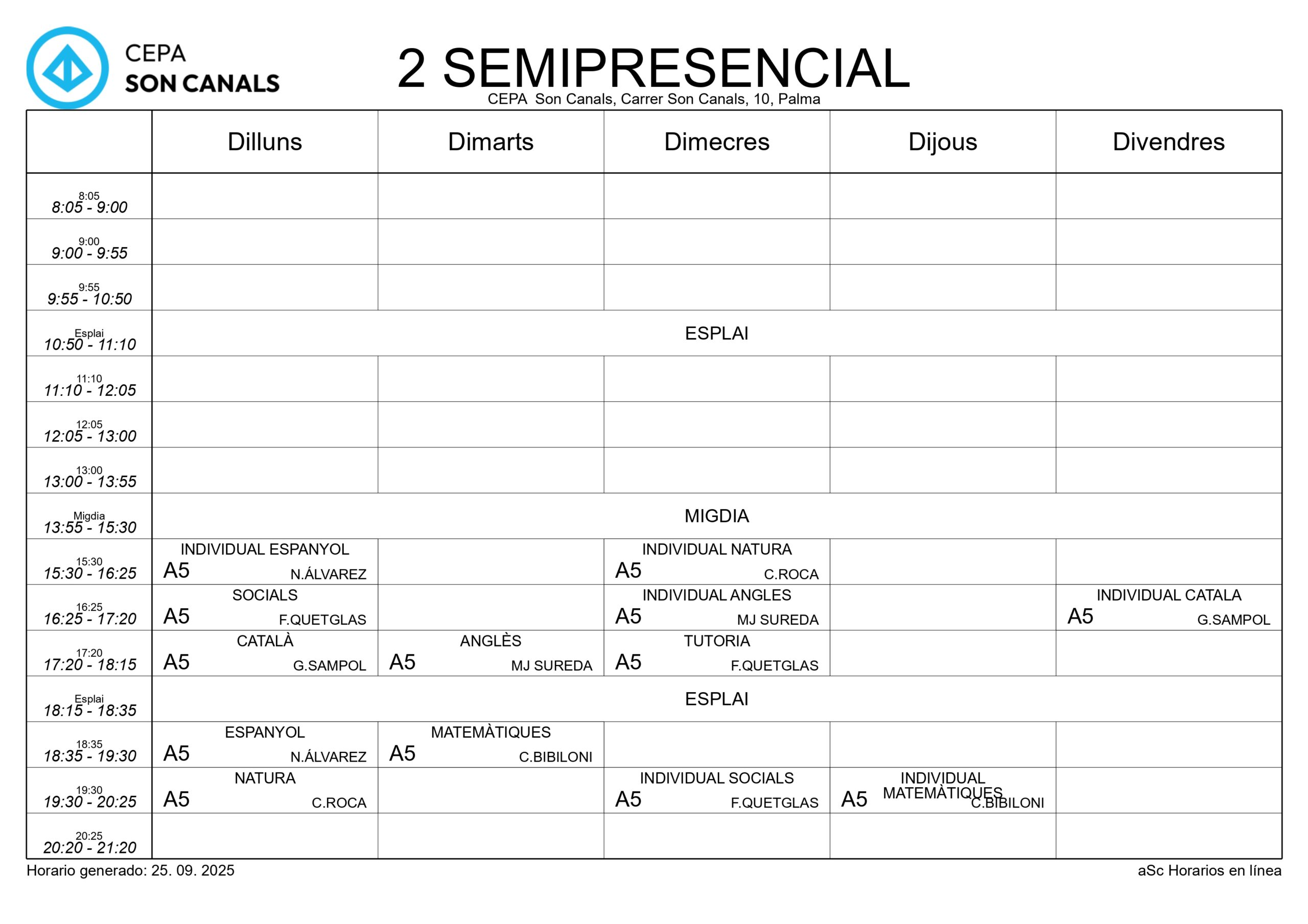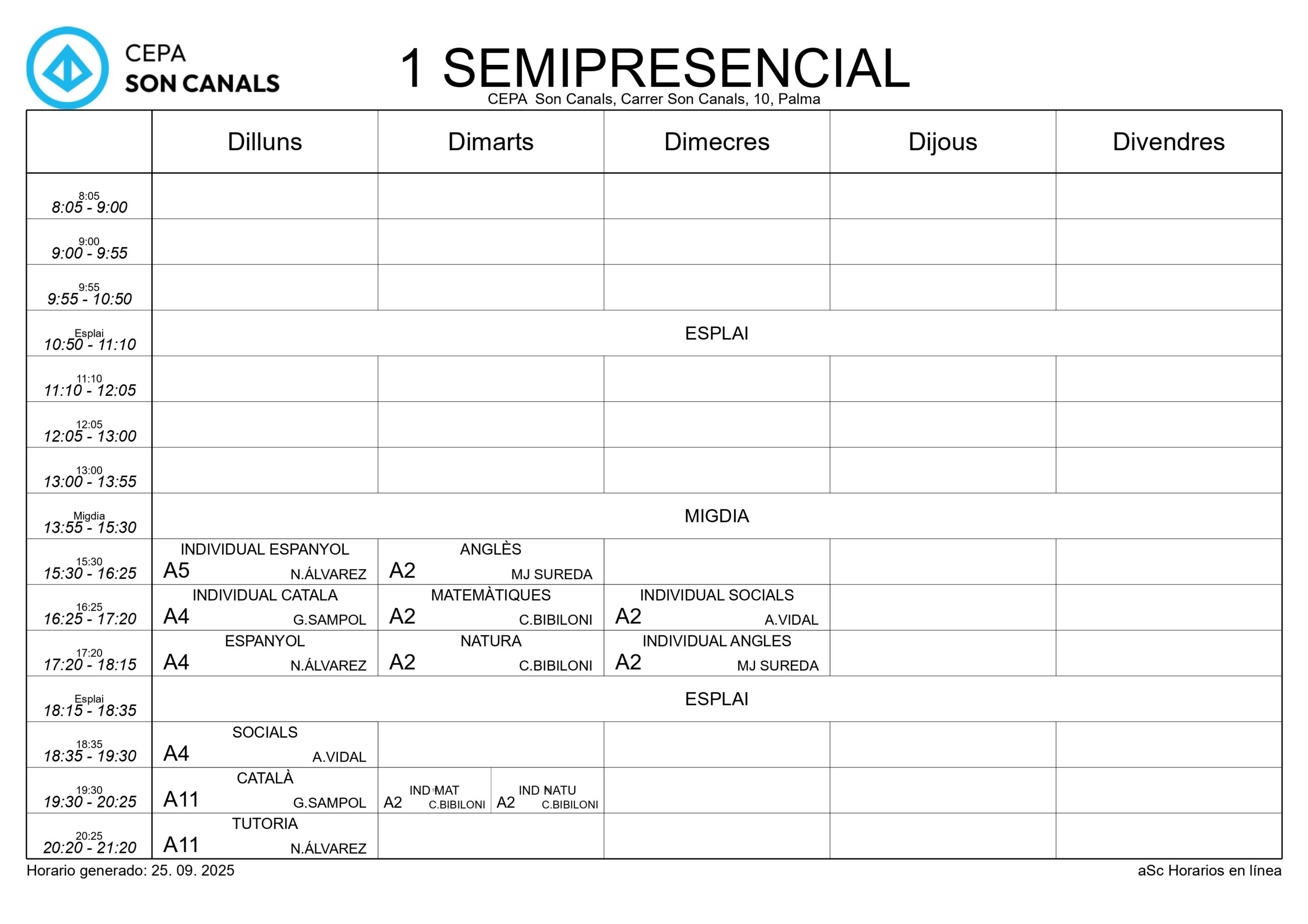 - ESPA Semipresencial – On l’assistència NO és un requisit, excepte a l’examen final.